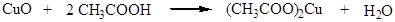 Черный оксид меди (II) реагирует с уксусной кислотой при нагревании с образованием раствора ацетата меди голубого цвета: